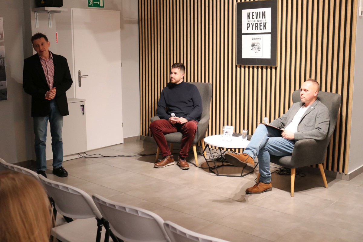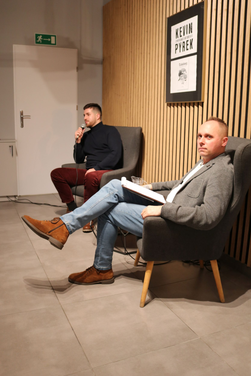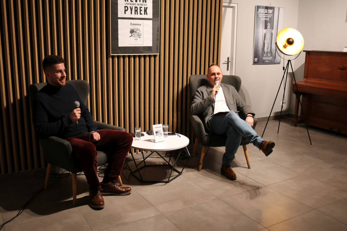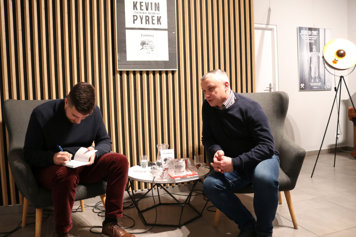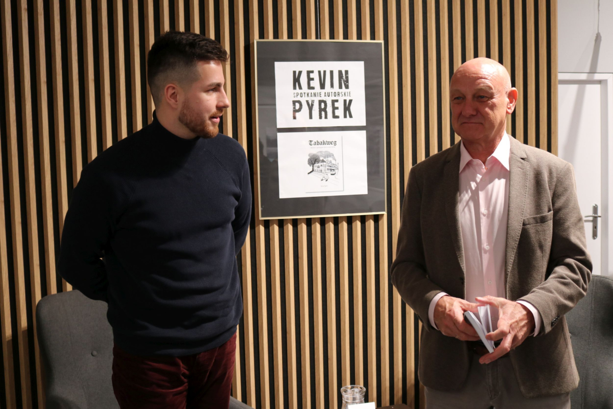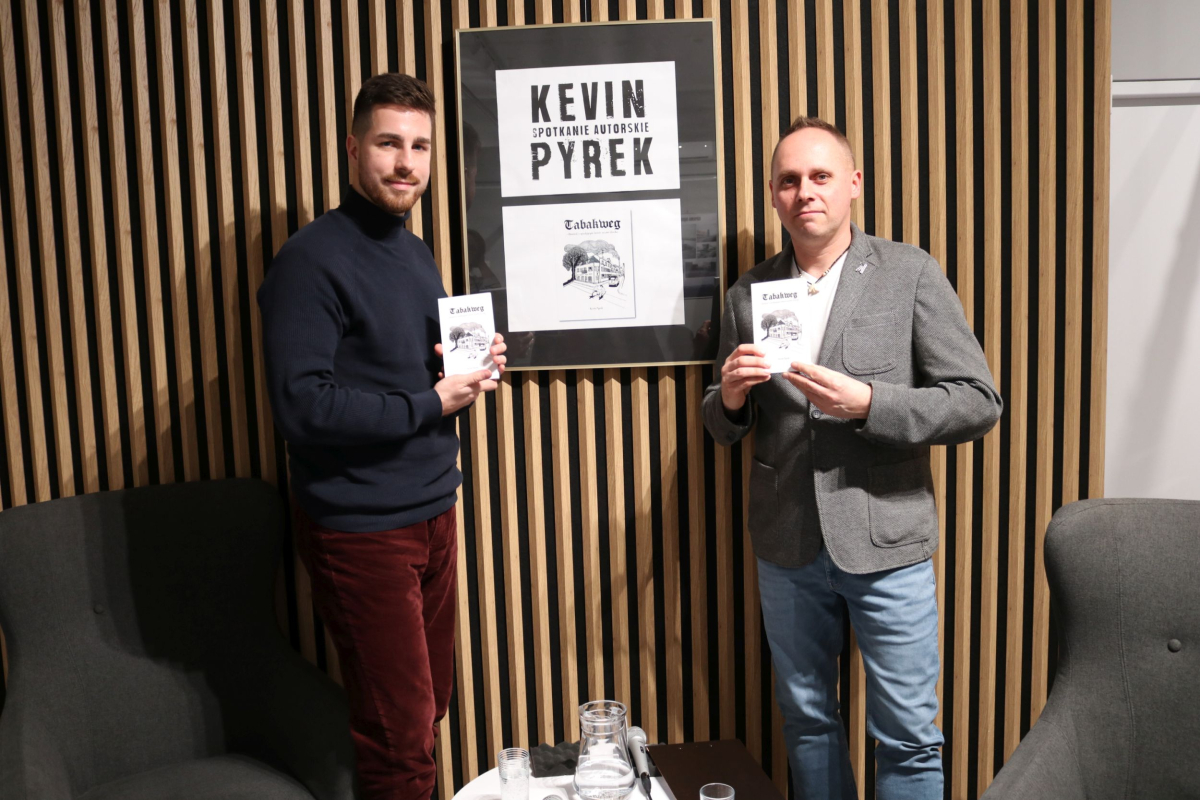 Weekend w Izbie Regionalnej otworzyliśmy naprawdę mocnym śląskim i jednocześnie międzynarodowym akcentem. W naszych skromnych progach pojawił się wyjątkowy gość z Luksemburga - Kevin Alex Pyrek, autor książki "Tabakweg. Opowieść o upadającym świecie oczami dziecka". Rozmowa, którą poprowadził opiekun Izby Regionalnej Łukasz Żywulski skupiła się przede wszystkim na losach i często też przygodach emigrantów (Papika, Kaisera, Dzióbka, Młodego, Boroka, Bacy, Krasnala, Cygona, Lumpicy, Kozoka, Partyzanta i wielu innych) m.in. z Górnego Śląska (Zabrza, Mysłowic, Bytomia, Piekar Śląskich), którzy w latach powojennych zasiedlali niewielką uliczkę Tytoniową w stolicy Alzacji - Strasburgu. Autor opowiedział o swoim dzieciństwie spędzonym na tej ulicy i codzienności upływającej w towarzystwie często awanturujących się, żyjących z dnia na dzień robotnikach, budowlańcach i handlarzach samochodami z Polski. Zmierzył się również z pytaniami o własną tożsamość, kultywowanie tradycji śląskich ponad tysiąc kilometrów od hajmatu i tęsknocie za rodzimymi ajnfartami i hinterhausami. Serdecznie polecamy debiutancką książkę Pana Kevina. Po opracowaniu jeden egzemplarz pojawi się na półce Biblioteki Centralnej. Dziękujemy uczestnikom za obecność, a Autorowi życzymy kolejnych dobrych spotkań na Śląsku, ponieważ wszyscy zgodnie stwierdzili, że piekarski tref był bardzo udany.