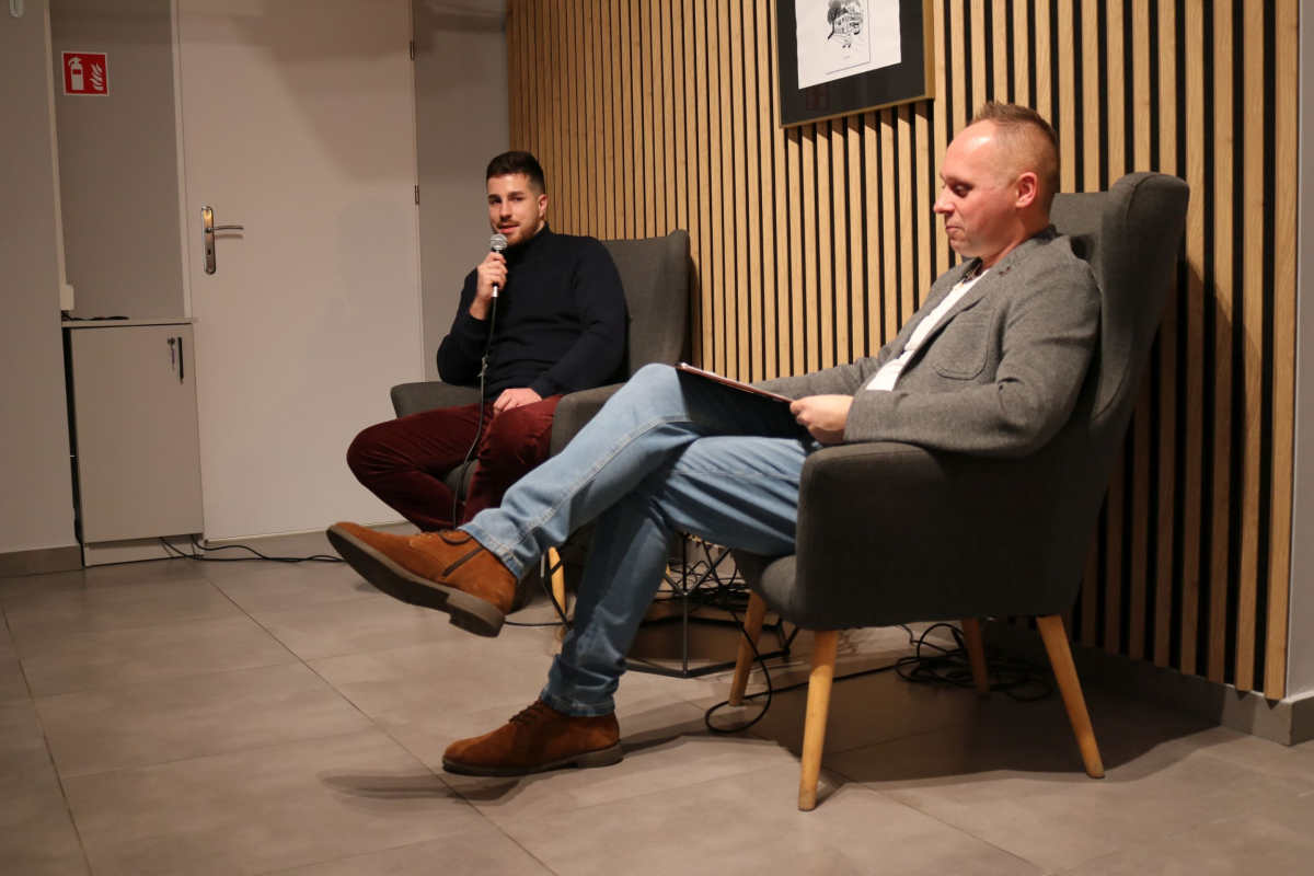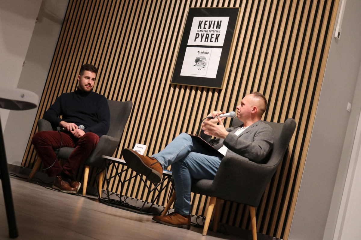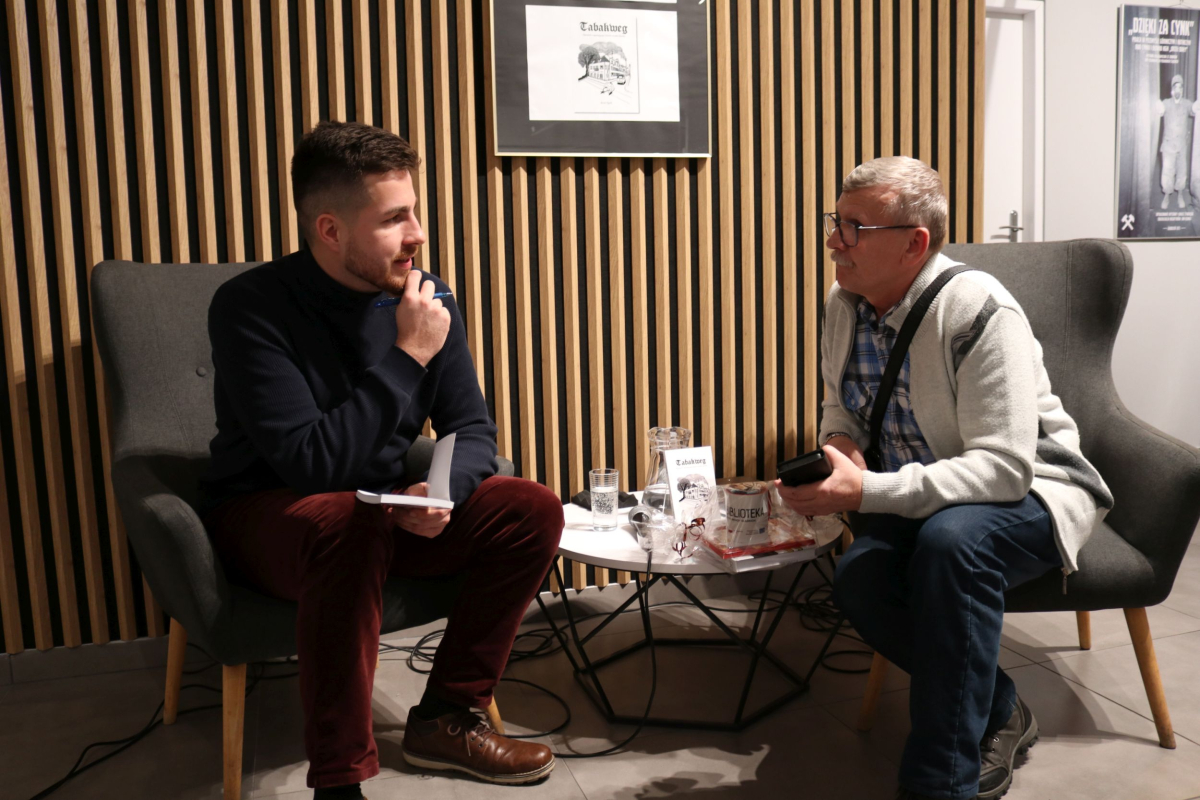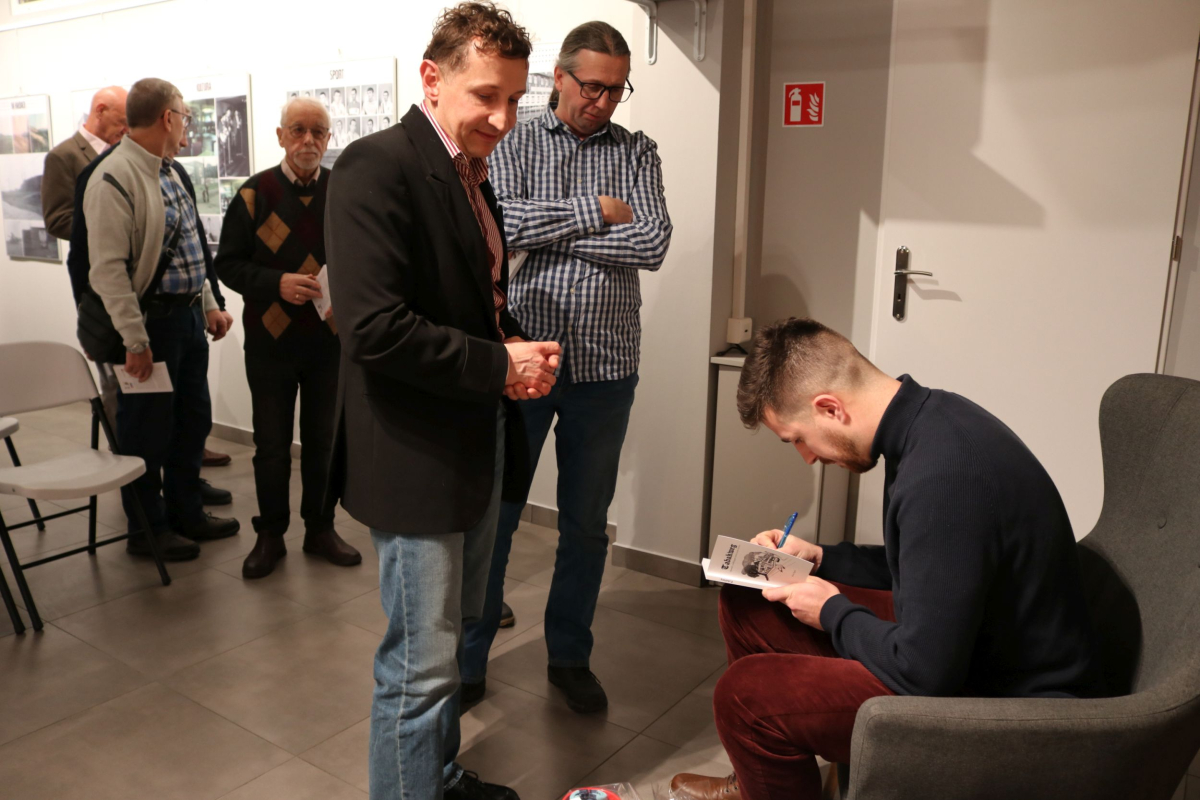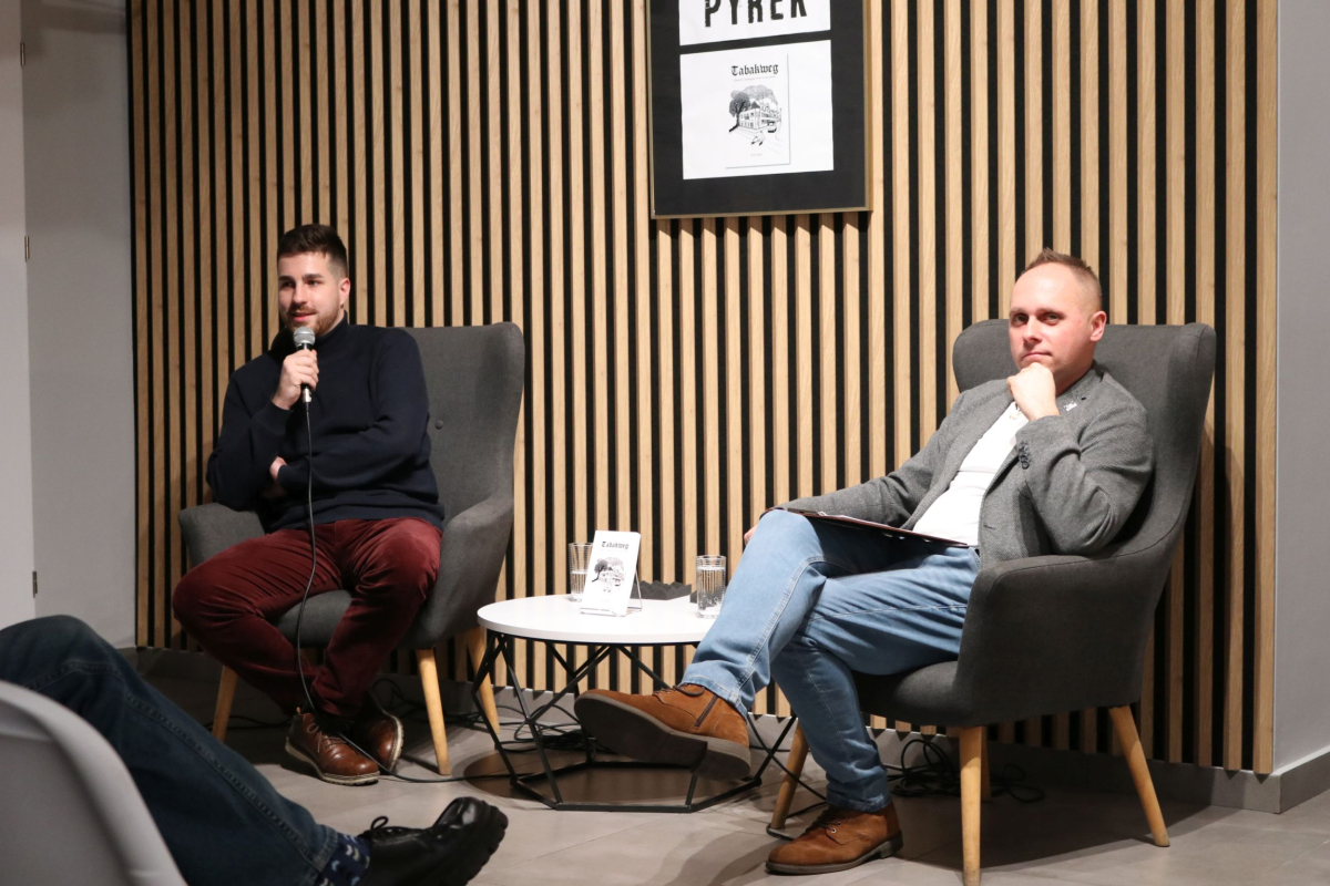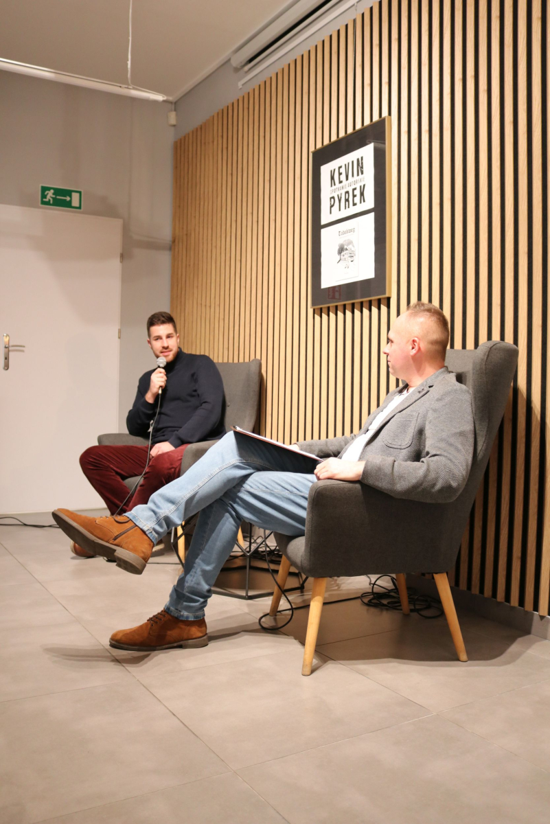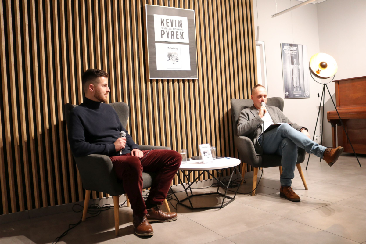 Weekend w Izbie Regionalnej otworzyliśmy naprawdę mocnym śląskim i jednocześnie międzynarodowym akcentem. W naszych skromnych progach pojawił się wyjątkowy gość z Luksemburga - Kevin Alex Pyrek, autor książki "Tabakweg. Opowieść o upadającym świecie oczami dziecka". Rozmowa, którą poprowadził opiekun Izby Regionalnej Łukasz Żywulski skupiła się przede wszystkim na losach i często też przygodach emigrantów (Papika, Kaisera, Dzióbka, Młodego, Boroka, Bacy, Krasnala, Cygona, Lumpicy, Kozoka, Partyzanta i wielu innych) m.in. z Górnego Śląska (Zabrza, Mysłowic, Bytomia, Piekar Śląskich), którzy w latach powojennych zasiedlali niewielką uliczkę Tytoniową w stolicy Alzacji - Strasburgu. Autor opowiedział o swoim dzieciństwie spędzonym na tej ulicy i codzienności upływającej w towarzystwie często awanturujących się, żyjących z dnia na dzień robotnikach, budowlańcach i handlarzach samochodami z Polski. Zmierzył się również z pytaniami o własną tożsamość, kultywowanie tradycji śląskich ponad tysiąc kilometrów od hajmatu i tęsknocie za rodzimymi ajnfartami i hinterhausami. Serdecznie polecamy debiutancką książkę Pana Kevina. Po opracowaniu jeden egzemplarz pojawi się na półce Biblioteki Centralnej. Dziękujemy uczestnikom za obecność, a Autorowi życzymy kolejnych dobrych spotkań na Śląsku, ponieważ wszyscy zgodnie stwierdzili, że piekarski tref był bardzo udany.